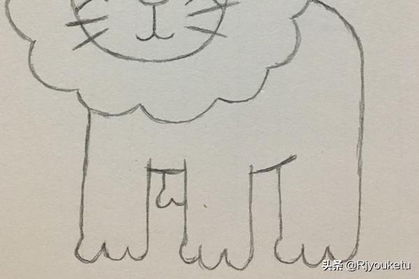 4、在狮子身体内对称画两条前腿,并用直线将两侧曲线连接,注意遮挡的部分不要画出,作为狮子的后腿。