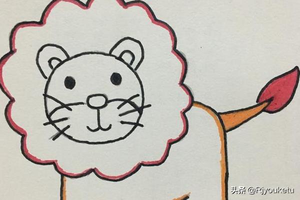10、最后描边,上色一个可爱的小狮子就完成啦!