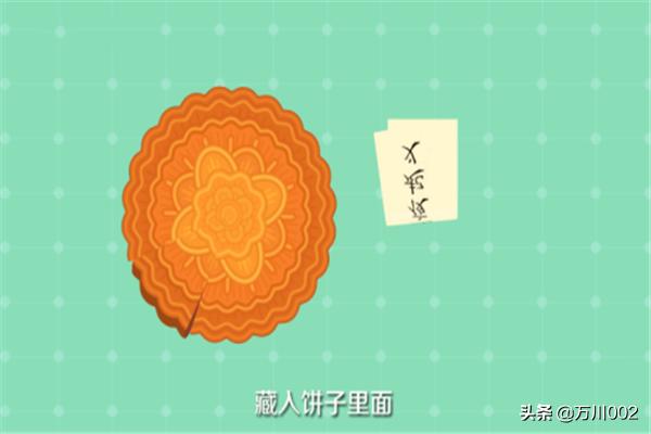 刘伯温把写有八月十五夜起义的纸条藏入饼子里面,再派人分头传送到各地起义军中通知他们在八月十五晚上起义。